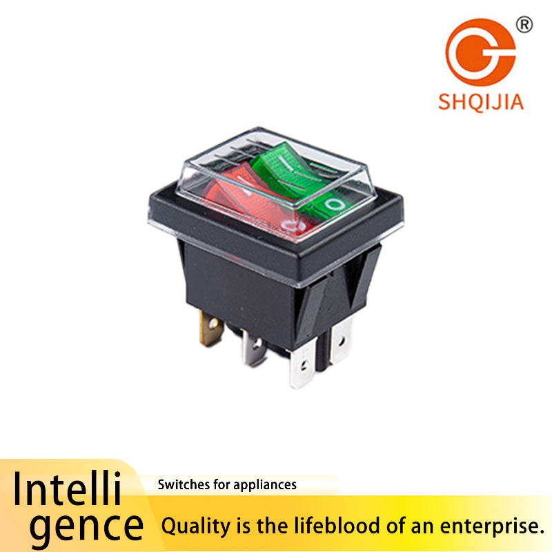El interruptor está construido con un robusto cuerpo de plástico negro, que ofrece un excelente aislamiento y durabilidad. Los balancines rojos y verdes con cubierta transparente están diseñados para un fácil accionamiento y comodidad visual. Ya sea que se utilice en electrodomésticos que requieren control de circuito dual, como ciertos ventiladores o equipos de oficina como impresoras, este interruptor ofrece un rendimiento constante y seguro. Sus opciones estructurales duales para resistencia al polvo y al agua, combinadas con la función de balancín de dos colores y una amplia gama de aplicaciones, lo convierten en una opción confiable para fabricantes y usuarios finales, lo que garantiza un funcionamiento eficiente y seguro en diversas aplicaciones.
