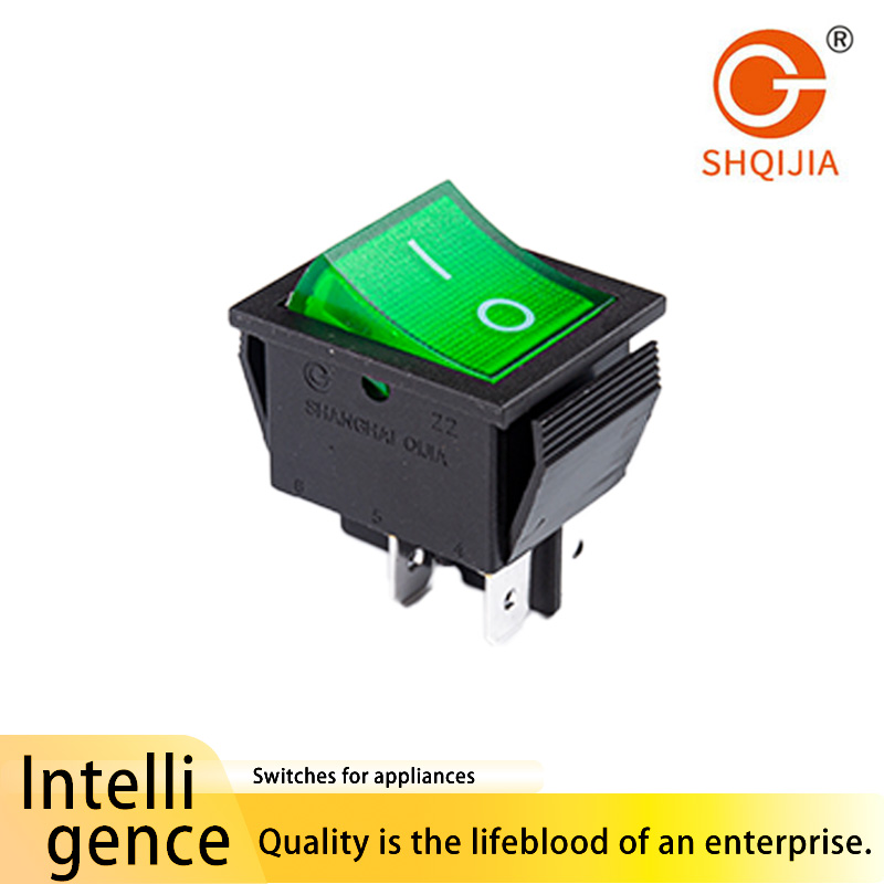 El Interruptor basculante en forma de Barco Verde R11-221 pertenece a la serie R11-1, un interruptor basculante estándar también conocido como interruptor en forma de barco o interruptor en forma de onda. Ofrece dos opciones estructurales: una con una cubierta protectora a prueba de polvo y agua, y la otra con una estructura interna a prueba de polvo.